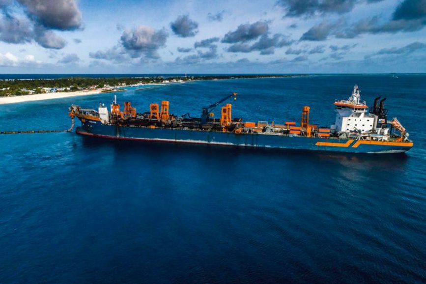 HANSA+ Van Oord baggert für neues Land und Küstenschutz der Malediven